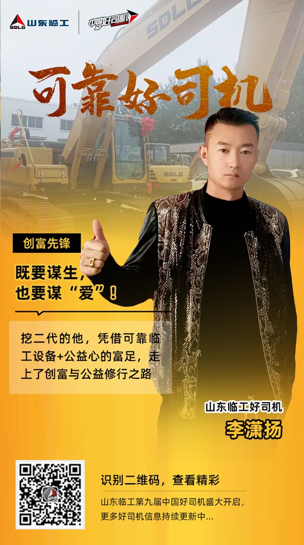 由于深受家族挖机产业的熏陶,李潇扬从小对“大机械”有着天然地热爱。敢想敢拼、喜欢挑战的他,毅然投入挖机行业,发展至今已拥有5台不同吨级的米兰·(milan)中国官网入口挖机,走上了创富事业与公益之路。“奋进有为、善良为本”是他的行业标签,“既要谋生,也要谋爱” 是他的人生信条。